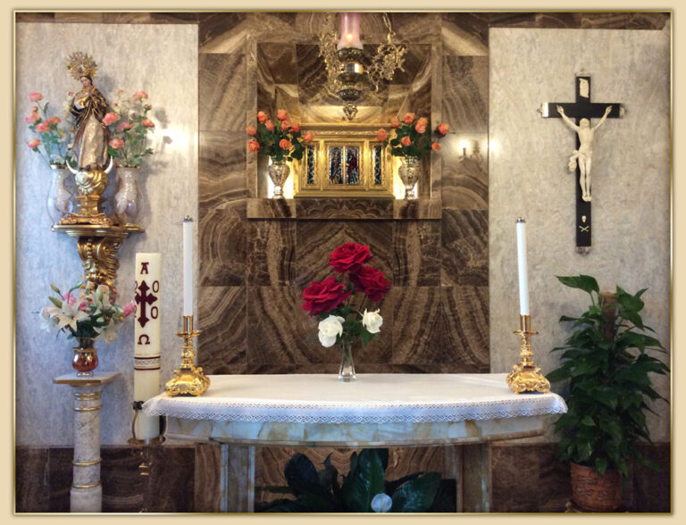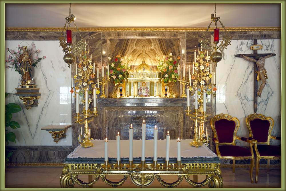 Considérant tout ce que nous venons de dire ainsi que la grande nostalgie, l’ardent désir d’éternité et la soif de Dieu qui embrasaient l’âme de Madre Trinidad de la Santa Madre Iglesia, la présence de Jésus dans sa propre maison était pour elle un réconfort, parce que dans le Tabernacle Mère Trinidad avait tout. Elle posait sa tête sur la poitrine de Jésus et elle trouvait en Lui des forces nouvelles afin de continuer à lutter dans cette vie pleine de souffrances, de difficultés, de contradictions… Avec Jésus elle remportait ses batailles dans sa lutte amoureuse, obtenant tout ce dont elle avait besoin pour son Œuvre de l’Église, pour l’Église, pour les âmes … en un mot : pour la Gloire de Dieu ! Ce qui était la seule chose qu’elle recherchait et la seule qui importait dans sa vie.