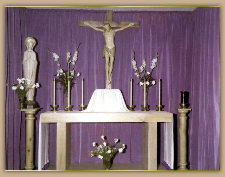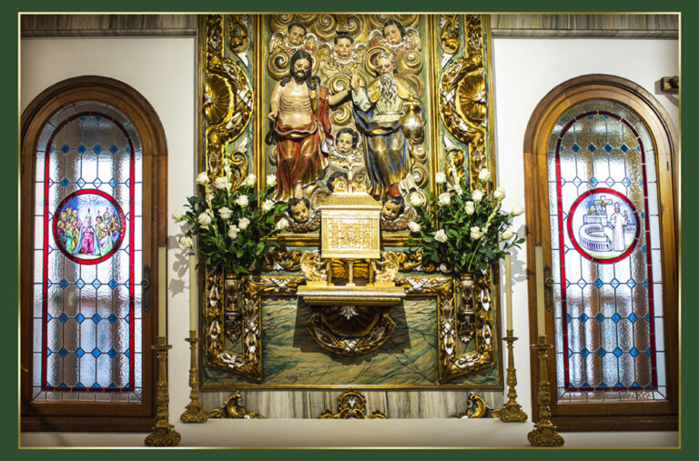 Je me souviens que nous avons acheté ce qui serait le premier Tabernacle de Mère Trinidad, avec une double porte en cuivre orné d’une représentation simplifiée de la Cène de Saint-Apollinaire de Ravenne.