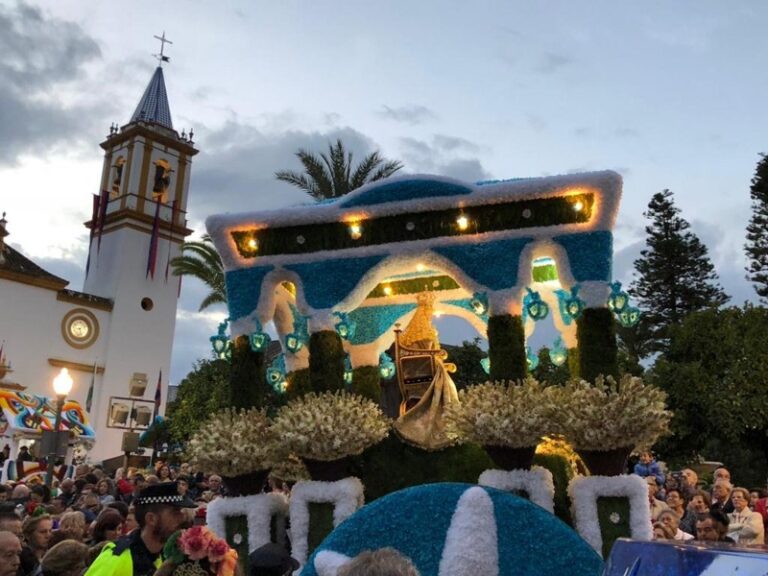 Tutti la accompagnano: la maggior parte in costume tradizionale, alcuni a piedi, altri a cavallo, altri ancora su carri decorati con fiori di carta, dando un colore unico e speciale alla celebrazione. Per manifestare l’amore e la devozione alla Vergine si intonano “sivigliane”, si cantano “ballate”, si prega, si gridano “evviva!” e complimenti alla Madre di Dio mentre passa maestosamente per le strade della cittadina; fino all’arrivo all’”Eremo di Cuarto” dove viene celebrata la Messa per i pellegrini. Poi ci si riunisce per un pasto familiare, fino a quando, all’imbrunire, si torna con la Madonna in paese dove si attende con gioia ed emozione il momento del suo rientro nella chiesa parrocchiale.