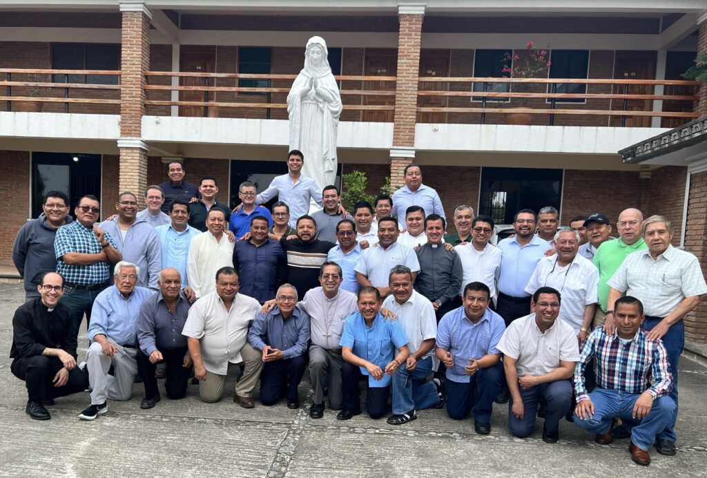 Al día siguiente fuimos a Papantla, al centro de retiros “Casa de la Iglesia”, en medio de la naturaleza, un lugar de silencio y paz, encomendado a la Virgen Blanca, que presidía la plaza del complejo. Allí dimos el primer retiro para sacerdotes, de los dos previsto en la misión. Estuvimos de lunes a viernes con unos 45 sacerdotes diocesanos, que poco a poco iban entrando en el ambiente de silencio del retiro, y al terminar, llenos de gozo y alegría, mostraban su profundo agradecimiento y sorpresa por haber descubierto a través de la Madre Trinidad este tesoro que es para todos, profundizando en su vocación sacerdotal y dispuestos a empezar una vida de más oración silenciosa ante Jesús, que nos espera siempre en el Sagrario. La misma experiencia la tuvimos con el segundo grupo de sacerdotes la siguiente semana, y además contamos con la presencia de Mons. José Trinidad. ¡Qué alegría percibir que crecía en todos ellos, unidos a su Obispo, la conciencia de vivir más profundamente su ser de Iglesia, para conocer y amar más a Dios, a Jesús en la Eucaristía y a la Virgen, como verdadera Madre de Dios y Madre nuestra!