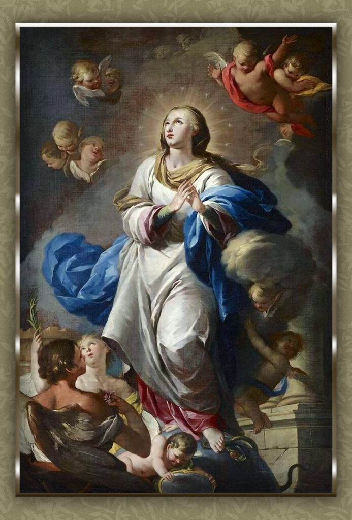 E o Amor, beijando-a suavemente…, ternamente…, silenciosamente…, no seu beijo imutável, silencioso e indizível de Virgindade…; naquele instante-instante no qual está a alma de Maria, com a sua capacidade cheia de divinização, segundo o plano de Deus para com Ela, sim, naquele instante-instante, a carícia imutável do Espírito Santo roubou a sua “presa”, num êxtase de amor, cheia e repleta, saturada e apertada, por participação, de Divindade.»