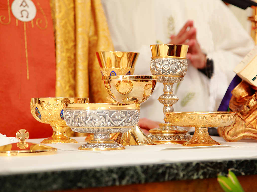 À santa Eucaristia eu me acerco reverente, com tremores cada dia, quase sem querer roçar-te com minha boca entorpecida, pois conheço, na minha pobreza, as eternas perfeições da tua excelsitude excelsa, em teus fogaréus divinos…